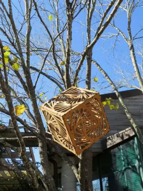 Modern building with large windows, fascinating Peruvian and Costa Rican objects, and sculpture garden in Loch Haven Park.