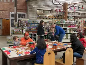 Fairly fun place to come with little kids for the play areas and with big kids for the maker space.