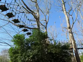 Wonderland of huge tropical trees hung with vines, plus playground with abundant shade.