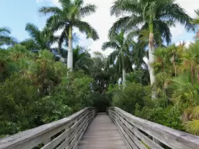 Tropical walk through mangrove forest and varied vegetation to a huge gazebo over the intracoastal and a path to a little beach.