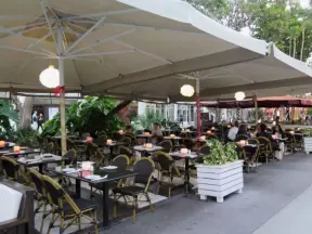Hip area with wine bars, cafes, and bakeries, where you can sit on a patio surrounded by ivy-covered walls.