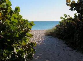 Beach with technicolor blue-green water sometimes, and a huge shady picnic pavilion where neighbors gather to watch the water, on beautiful Jupiter Island.