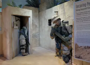 Large, modern army museum with impressive scenes made up of lifelike sculptures combined with equipment like tanks, planes, and helicopters.