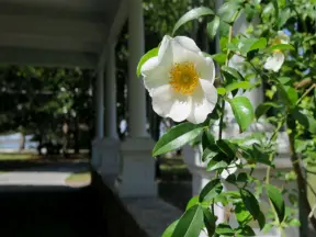 Lovely little walk past flower-covered archways and Casa Feliz historic mansion.
