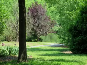 Walk past lake with cypress trees, and down three culdesacs with mansions.
