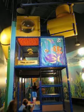 Super children's museum with rope climbey, music station, dance area, lincoln logs, magnetic triangles, sand that responds, supermarket, and more!