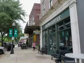 A main street of late 19th century storefronts, popular cafes, and a hip college scene. Recently, suffering an epidemic of homelessness relating to mental health problems.