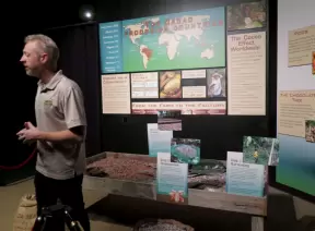 Two beautiful modern buildings full of attractive exhibits including some live animals.