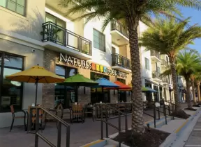 A happening spot with a sunken amphitheater by the water where kids can run in a splash pad and fountains are lit up at night. BurgerFi, Subculture Coffee, and a few restaurants.