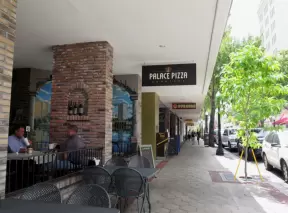 Main strip of West Palm Beach, with colorful and inviting architecture and decorations.
