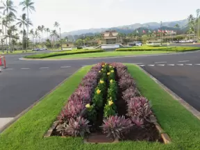 A nice walk past palms, flowers, and mountains on the Brigham Young University campus in La'ie (Laie).