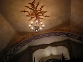 Stunning Spanish Renaissance style church with peaceful blue interior and Tiffany glass windows.