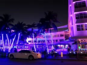 After sunset, check out the Art Deco buildings along Ocean Drive, lit up in neon!