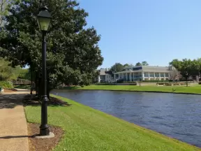Walk past lake with cypress trees, and down three culdesacs with mansions.