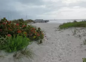 Beach with pretty dunes, slightly grody shoreline, and great walk to jetty.