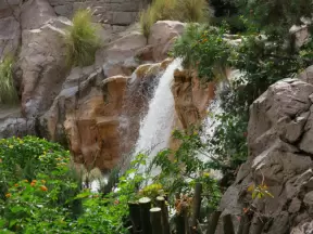 Gorgeous botanical garden with paved one mile walk to a waterfall.