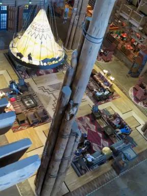 Walk the impressive lobby and forested grounds of the Wilderness Lodge, then catch the boat over to Contemporary Resort.