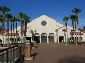 Beautiful modern basilica with gift shop, water lilies, stained glass, rose window, organ and exceptional choir.