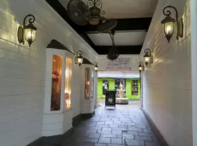 A sumptuous street with Spanish archways and courtyards and unique shops for the extremely rich.
