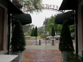 Lovely little walk past flower-covered archways and Casa Feliz historic mansion.