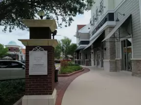 Main strip of West Palm Beach, with colorful and inviting architecture and decorations.