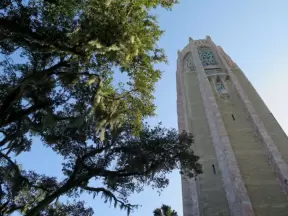 Center with large magical lifelike dioramas of Foster's songs, bell-tower, and river gazebo.