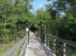 Wide boardwalk for walking or bike riding. Pretty vegetation and lots of people.