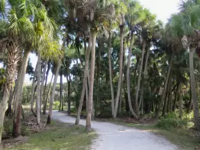 Tropical paradise with amazing trees, soft green grass, and woven huts shading picnic tables with BBQs that line the river, plus bike and kayak rentals. Beware alligators.