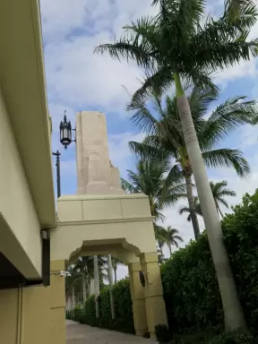 Pretty park at the beginning of the North Lake Trail, near the Flagler Memorial Bridge. Walk under the bridge to check out Royal Poinciana Plaza.