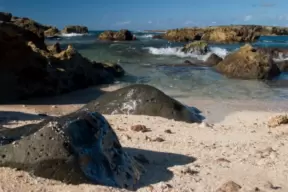 Limestone rocks that spurt water when the waves are 4-6 feet, a path through twisty trees to the beach, a visitor center, and a loop hike by the intracoastal.