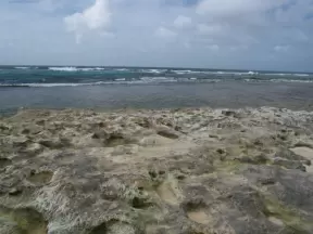 Exposed beach with gorgeous sea grape forest, sand volleyball courts, and basketball courts- a happening scene! Plus a concession snack area with a huge grass shack for shade.