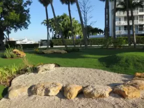 Pretty park at the beginning of the North Lake Trail, near the Flagler Memorial Bridge. Walk under the bridge to check out Royal Poinciana Plaza.