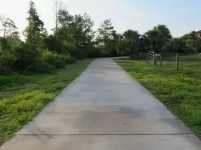 Very wide cement path through lovely white-sand forest! There is also a narrow, unpaved path that is lovely.