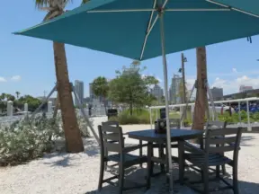 A happening spot with a sunken amphitheater by the water where kids can run in a splash pad and fountains are lit up at night. BurgerFi, Subculture Coffee, and a few restaurants.