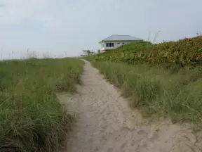 Gorgeous blue-green water, nice sand, wildflowers on the path, and condos.