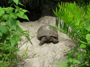 Master-planned community with lovely shady walking paths alongside sunlit forest areas with gopher tortoises.