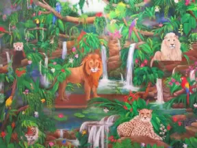 Incredibly lush and beautiful grounds, with animals in happy enclosures built around natural bodies of water.