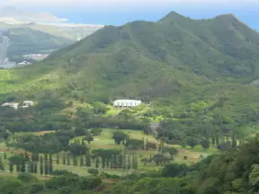 Birdseye views over the windward side from a freeway tucked into the Koolau mountains.