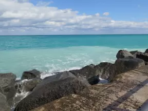 Blissful beach at the end of Worth Avenue, a blissful street! Long pedestrian walkway bordered by wave wall.