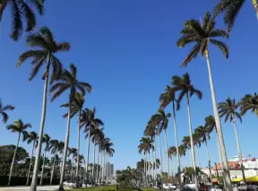 Walk past mansions in the shade of pine and palm trees on Palm Beach Island.