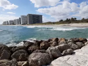 Blissful beach at the end of Worth Avenue, a blissful street! Long pedestrian walkway bordered by wave wall.