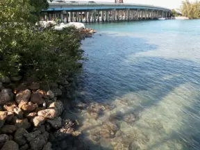 World-famous area full of sealife- see the huge yellow and orange starfish, and manatees, from the jetty! Shaded playground too.