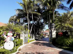 Walk past mansions in the shade of pine and palm trees on Palm Beach Island.