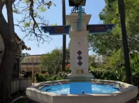 Special area of Balboa Park with adobe buildings, mesquite trees, and brightly colored tiles on the ground. Heart sculpture, and SD Gem Museum. Plus, the wonderful carousel!