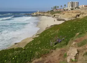 Great spot with views of Pacific Beach and its pretty pier. Stairs down to a beach of huge pebbles that you can't really walk on!