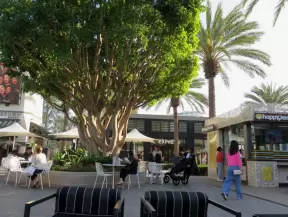 A ritzy mall with beautiful trees, public spaces, breezy restaurants, and a good coffee shop.