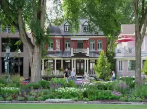 Walk past the beautiful sorority and fraternity houses in the shade of trees.