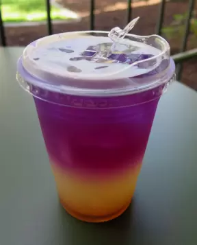 A colorful, spacious outdoor mall with boba tea, a toy store, and lots of teen clothing stores!