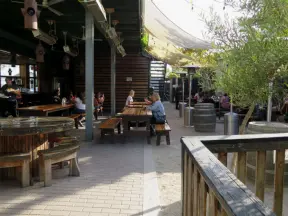 Coffee shop, food court, ice cream and pastry shops, brewery, gift shop and market, outdoor public spaces with fire pit and tables and selfie spots galore, farm with donkeys, goats, and alpaca! Also called San Luis Ranch.