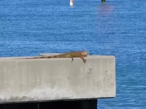 Gorgeous views of the blue bridge and wide waterway. See public art, and dolphins.